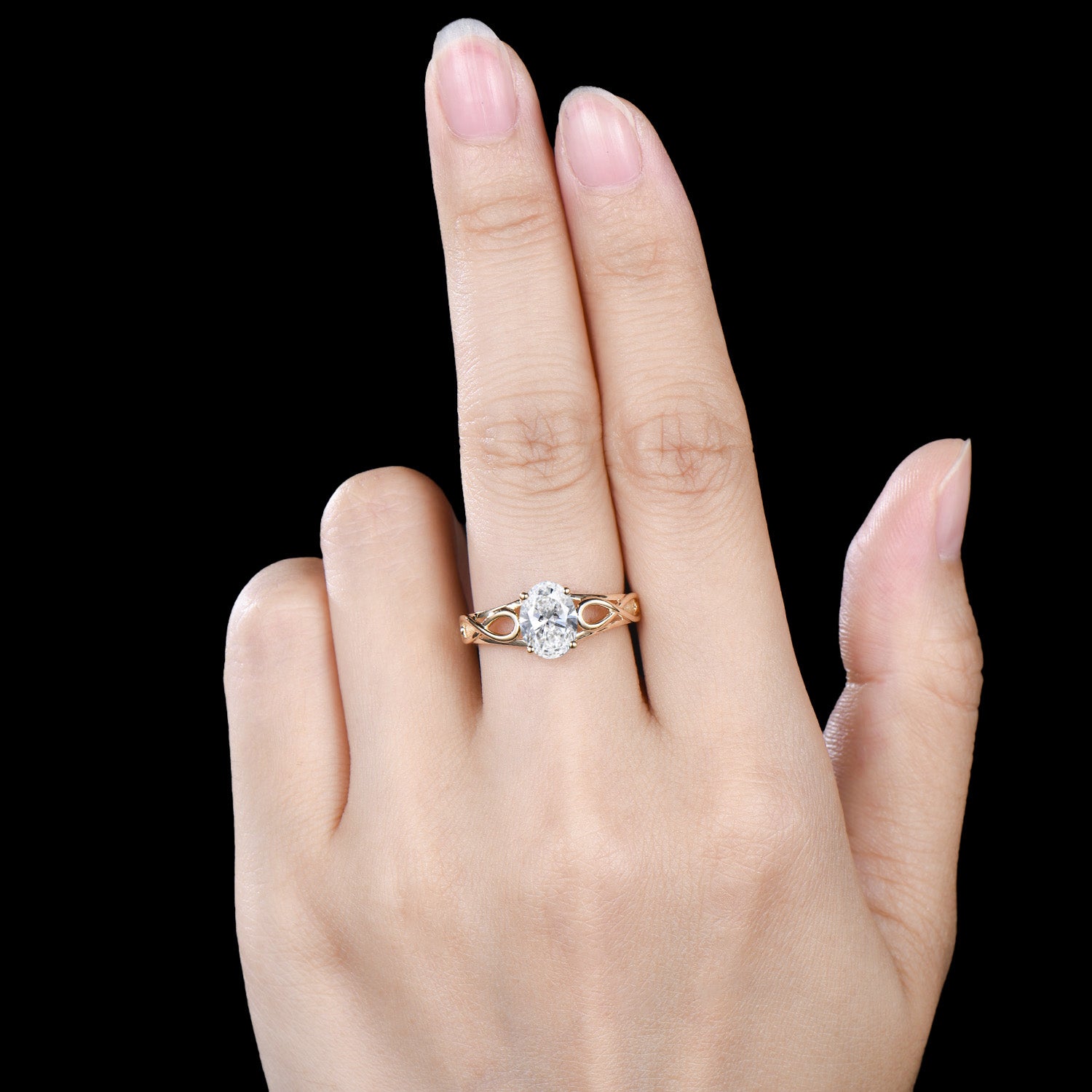 - Main stone: 6×8mm Oval Cut Moissanite