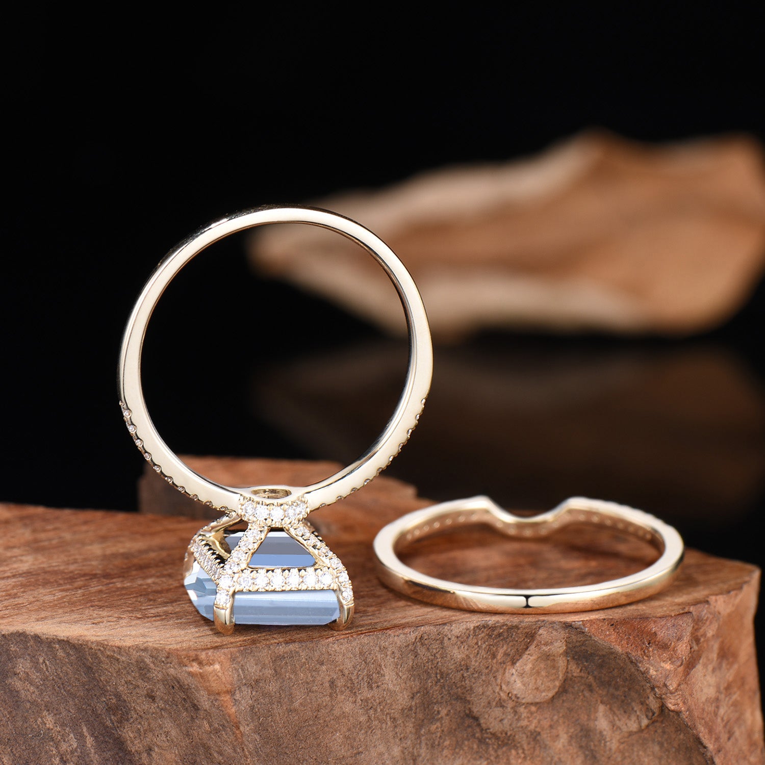 - Main stone: 10×12mm Emerald Cut Natural Aquamarine